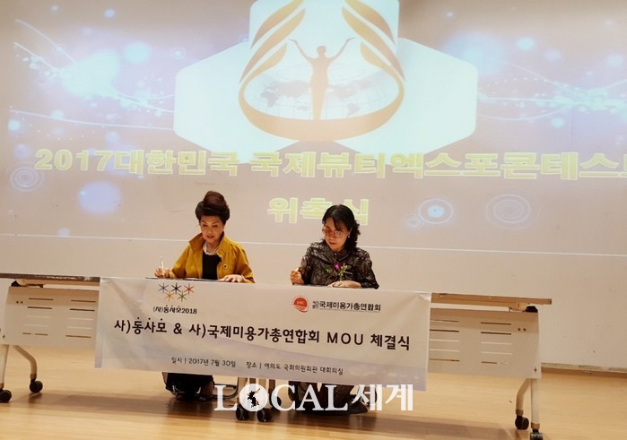 [로컬세계 김재덕 기자]사단법인 동사모2018(이사장 원호경)은 지난 30일 오후 5시 국회의원회관 대회의실에서 사단법인 국제미용가총연협회(이사장 성기하)와 업무협약식을 가졌다.
