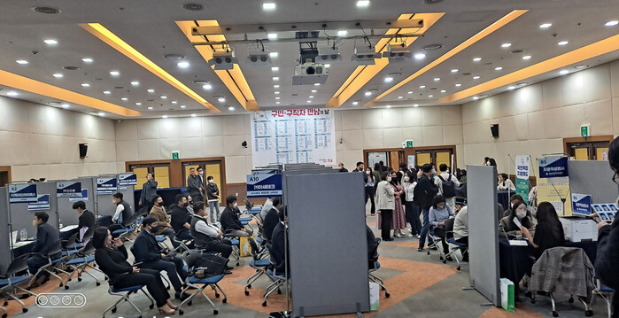 | ▲ 지난 3월 성남 정자동 킨스타워 7층에서 열린 구인‧구직자 만남의 날 행사 모습. 성남시 제공 |