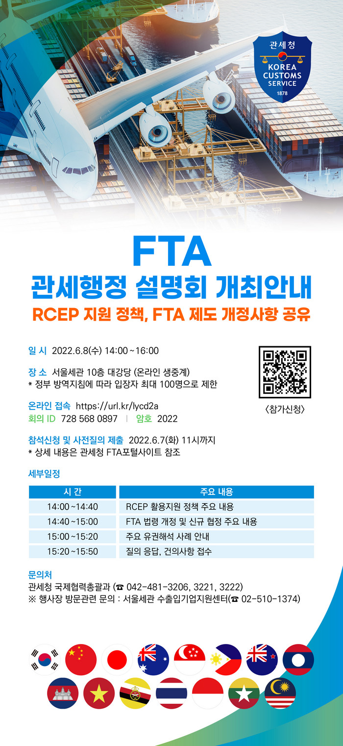 설명회 현장 방문 또는 온라인 참석을 희망하는 사람은 관세청 에프티에이포털에서 신청하면 된다.