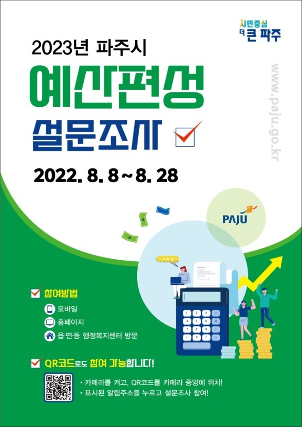 ’시민 중심 더 큰 파주‘ 민선 8기 김경일 시장의 파주시 청사진이다. 시민 중심 열린 행정을 위해 파주시는 앞서 시민들을 대상으로 예산편성 설문조사도 실시했다.