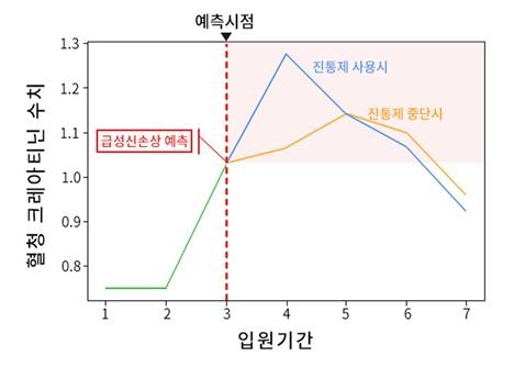 ▲'급성 신손상 예측 시스템'을 통한 혈청 크레아티닌 수치 변화 예측 |