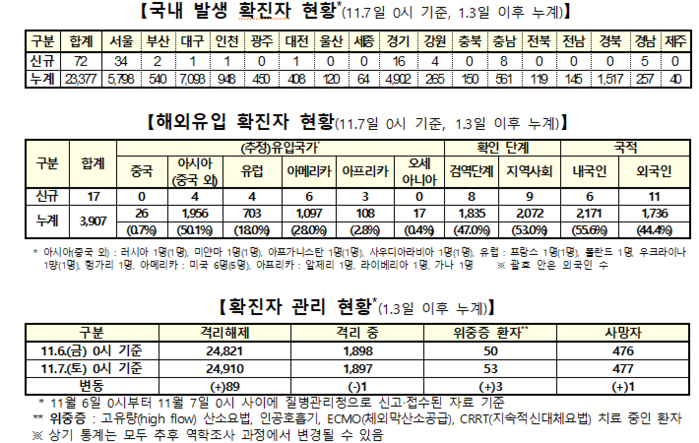 ▲일일 확진자 현황 (11.7. 0시 기준, 27,284명) |