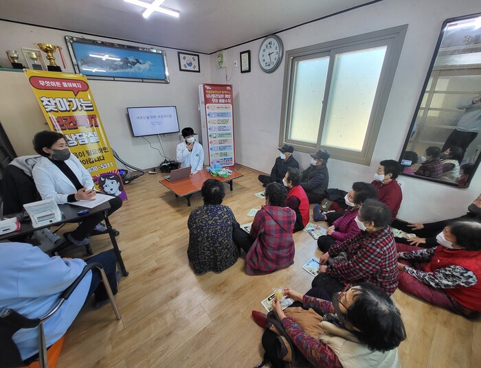 이 사업은 보건지소와 복지팀이 협업체계를 갖추어 추진하는 사업으로, 공중보건의의 구강보건교육과 함께 간호직공무원이 혈압‧당뇨 검사 및 맞춤형 보건복지 상담을 실시하며 복지사각지대를 해소했다.