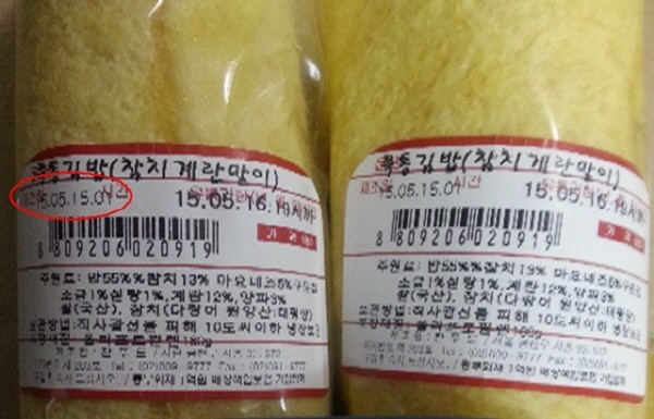 ▲ 유통기한 변조 식품 사진(유통기한 5시간 변조)<사진제공=식약처> |