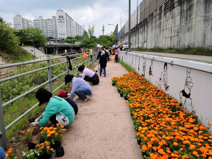 동과 주민자치위원회는 매년 탄천 가꾸기 사업을 지속적으로 진행해 주민들에게 쾌적한 산책로와 다양한 볼거리를 제공하고 있다.