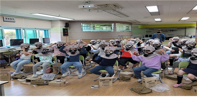 | ▲ 방독면 소개교육 및 착용연습. 경기도 제공 |