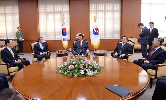 ▲ 지난해 9월 한·일·중 3국 외교부 고위급회의 대표 접견<사진출처=외교부 홈페이지> |