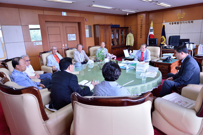 ▲세종시의회 임상전 의장이 보훈단체 관계자들의 건의사항을 듣고 있다. |