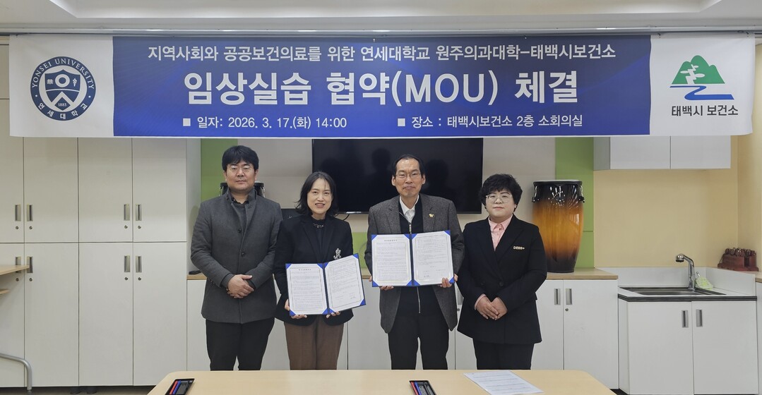 강원 태백시(시장 이상호)는 지난 17일 보건소 2층 소회의실에서 연세대학교 원주의과대학과 지역사회 발전을 위한 업무협약(MOU)을 체결했다고 밝혔다.