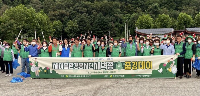 이번 행사는 새벽종(단장 이대재), 새마을지도자파주시협의회(회장 신경재), 파주시새마을부녀회(회장 김명자), 새마을교통봉사대 파주지대(대장 조두현) 등 새마을지도자 및 시민 200여 명이 참여해 자연정화활동 ‘줍깅’을 진행했다.