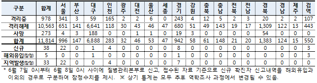 신규 격리해제자는 11명으로 총 1만563명(89.4%)이 격리해제 돼 현재 978명이 격리 중이다.