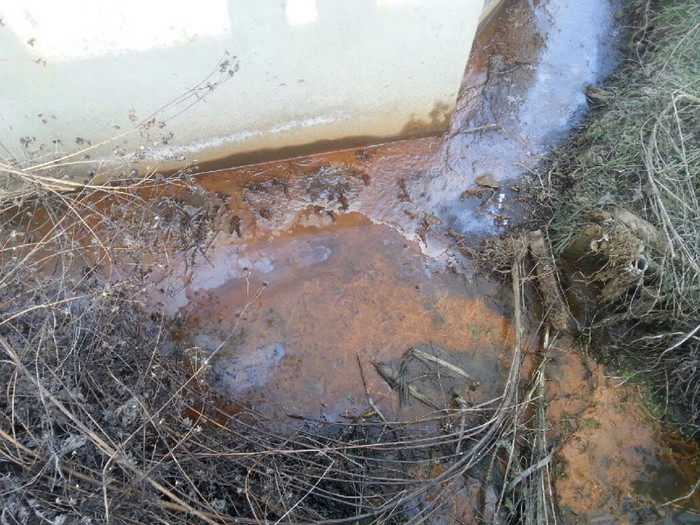 ▲농업용수로를 따라 흐르는 기름. 최원만 기자. |