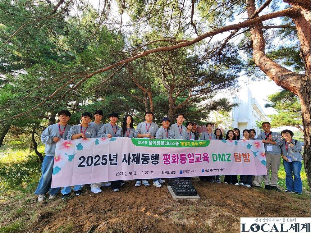 [로컬세계 = 김명진 기자]전라남도교육청은 지난 26~27일 강원도 고성군 일원에서 ‘사제동행 평화통일 DMZ탐방’을 운영했다. 이번 DMZ탐방에는 2018년 ‘율곡통일리더스쿨’ 프로그램에 참여했던 학생과 운영추진단 20여 명이 함께해, 7년 전 타임캡슐을 묻었던 율곡부대를 다시 찾았다.