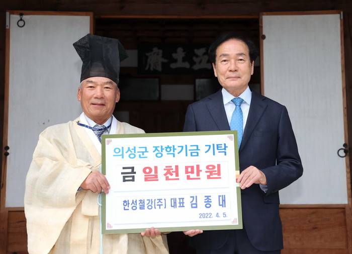 [로컬세계 박상진 기자]경북 의성군인재육성재단(이사장 김주수 의성군수)에 김종대 ㈜한설철강 대표가 지난 5일 지역인재육성 및 교육발전을 위한 장학금 1000만원을 기탁했다.