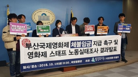 앞서 청년유니온은 더불어민주당 이용득 국회의원과 함께 지난달 19일 국회 정론관에서 ‘부산국제영화제 체불임금 지급 촉구 및 영화제노동실태조사 결과 발표’기자회견을 가진 바 있다.