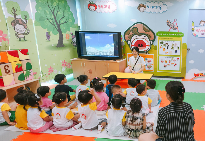 ▲어린이건강식생활체험관 치카마을 교육 모습. 용인시 제공 |