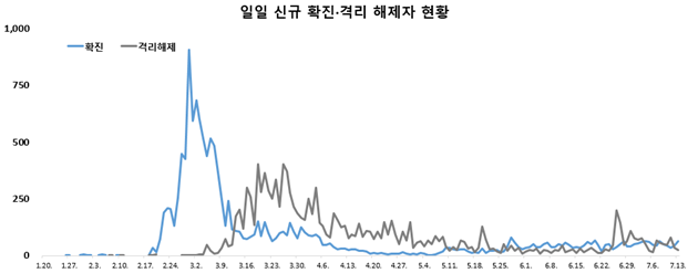 ▲확진자 일별 추세 (7.13. 0시 기준, 13,479명) |