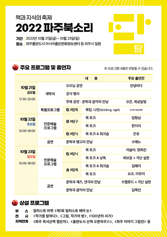 행사와 관련한 내용은 파주북소리 홈페이지에서 확인할 수 있다.