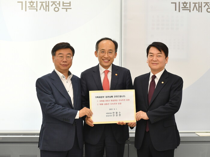 ▲신상진 성남시장(좌) 추경호 기획재정부장관(가운데) 안철수 의원(오른쪽)/ 성남시 제공 |
