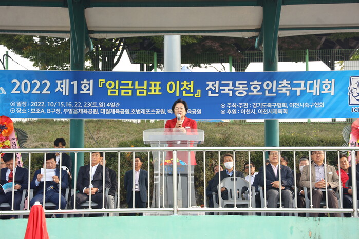 김경희 이천시장은 “이번에 이천시에서 제21회 이천쌀문화축제가 열리는 동안 2022 제1회 임금님표 이천 전국동호인 축구대회가 열리게 되면서 많은 사람들이 이천시를 방문해준 것을 감사하게 생각한다. 앞으로도 이천의 대표브랜드인 ‘임금님표 이천’을 더욱 많은 사람들에게 알리고 발전시키도록 하겠다”고 말했다.