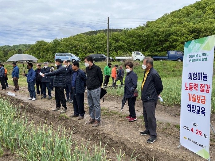 [로컬세계 박상진 기자]경북 의성군은 지난달 29일 의성읍 도동리 등 관내에서 시범농가 및 마늘재배농가를 대상으로 의성마늘 노동력 절감 기술보급을 위한 현장교육을 실시했다고 3일 밝혔다.