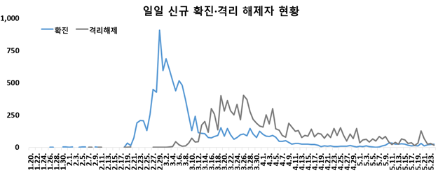 ▲확진자 일별 추세 (5.24. 0시 기준, 11,190명) |