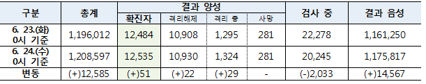 ▲확진자 일별 추세 (6.24. 0시 기준, 12,535명) |