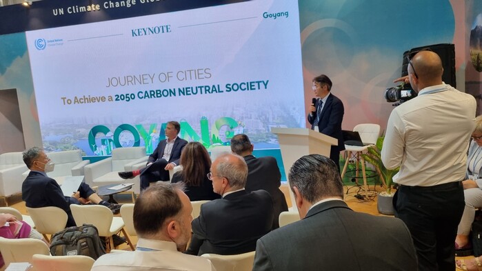 | ▲ 이동환 고양특례시장이 COP27에서 기조연설을 하고 있다. 고양시 제공 |