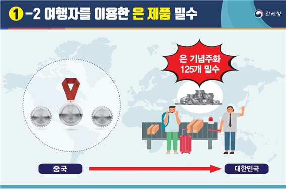 은 밀수는 크게 두 가지 유형으로 나타난다. 여행자가 해외에서 구입한 은을 인천공항 등을 통해 입국하면서 휴대품에 은닉해 밀반입하는 방식과, 특송화물을 이용해 목걸이·반지 등 개인용품이나 금속부품으로 위장해 반입하는 방식이다.
