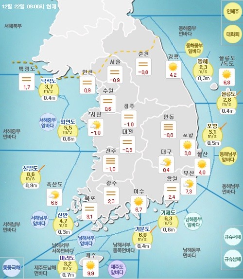 또한 오전까지 서해안과 내륙을 중심으로 안개가 짙게 끼는 곳이 많겠으니, 교통안전에 각별히 유의하기 바란다고 기상청은 전했다.