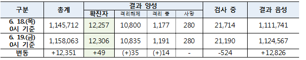 ▲확진자 일별 추세 (6.19. 0시 기준, 12,306명) |