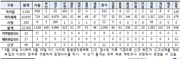 ◆지역별 확진자 현황 (19일 0시 기준, 1.3일 이후 누계)