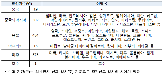 ◆국내 신고 및 검사 현황 (19일 0시 기준, 1.3일 이후 누계)