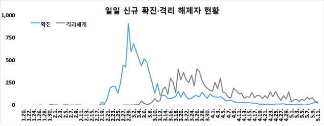▲확진자 일별 추세 (5.11. 0시 기준, 10,909명) |