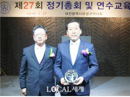 [로컬세계 조윤찬 기자] 대전시의회 김동섭 의원(새정연 유성)은 대전 유성구 의약단체장 협의회로부터 평소 유성구 의료단체 활동에 깊은 관심을 가지고 국민보건의료 증진에 크게 기여한 공로로 공로패를 수상했다.