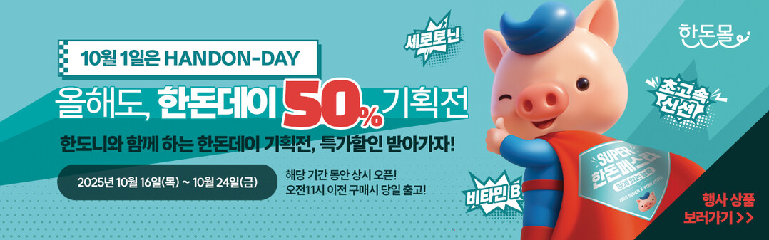 한돈몰에서도 10월 16일부터 24일까지 '한돈데이 50% 기획전'을 열고 반값 할인 혜택을 제공한다.