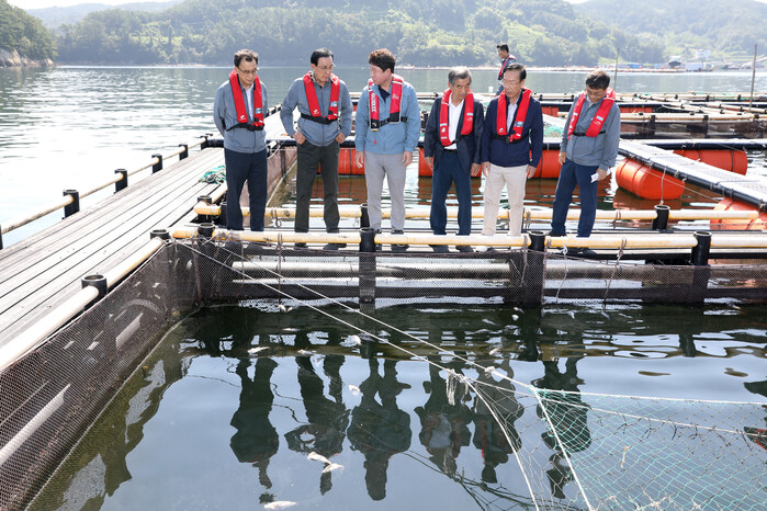 노동진 회장은 지난 25일과 26일 양일간 고수온 피해가 발생한 전남 여수시와 경남 통영시 일대 해상 가두리 양식장을 찾아 피해 상황을 점검하고, 고수온 대응 장비를 동원해 추가적인 피해 예방에 나서줄 것을 주문했다.
