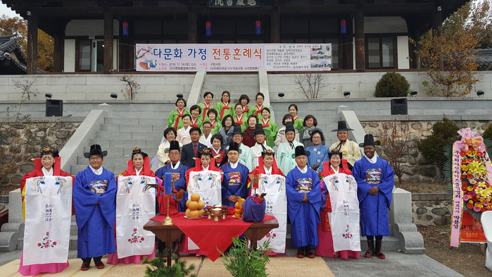 사단법인 다문화종합복지센터 대구지부(지부장 이은주)는 지난 24일 대구시 북구 구암서원에서 미국, 일본, 필리핀, 말레이시아 출신의 결혼이주여성 및 남성이 함께 하는 국제가정 5커플이 한국의 전통예법에 따라 혼례를 치렀다고 27일 밝혔다.