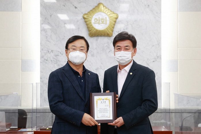 ▲광주시의회, 방세환의원 경우회로부터 감사패 수상. 광주시의회 제공 |