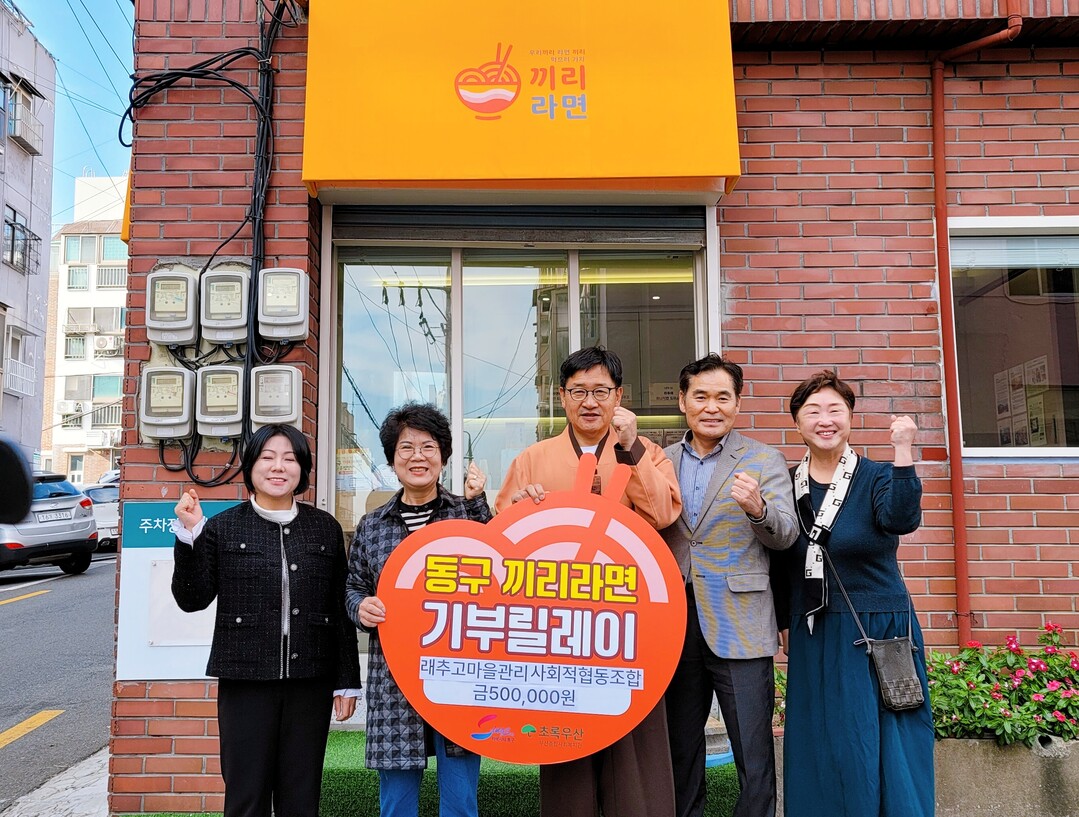 동구는 7일 래추고마을관리사회적협동조합에서 최근 은둔형 외톨이 및 사회적 고립가구를 발굴하고 지역사회와 연결하기 위한 동구형 복지사업 ‘끼리라면’에 후원금 50만원을 기부했다고 밝혔다.