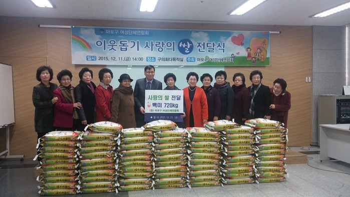 이번 사랑의 쌀 전달식은 여성단체연합회 회원들이 마련한 백미 720kg을 주위 저소득 가구 중 49가구에게 전달하는 행사로 어려운 이웃들과 작은 나눔을 통해 따뜻한 겨울을 보낼 수 있도록 격려하는 자리였다.
