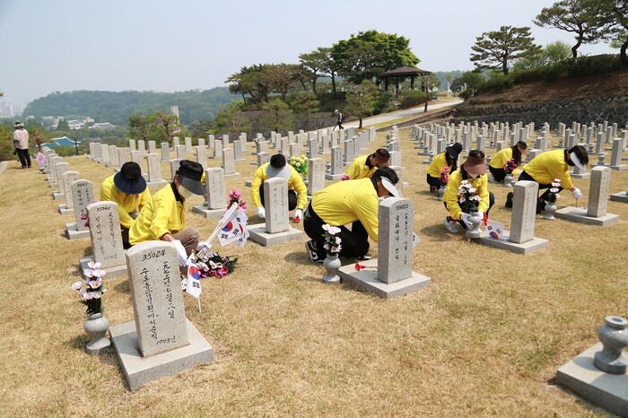-지난 5월 임직원들이 국립서울현충원을 찾아 묘역정화활동 등 진행