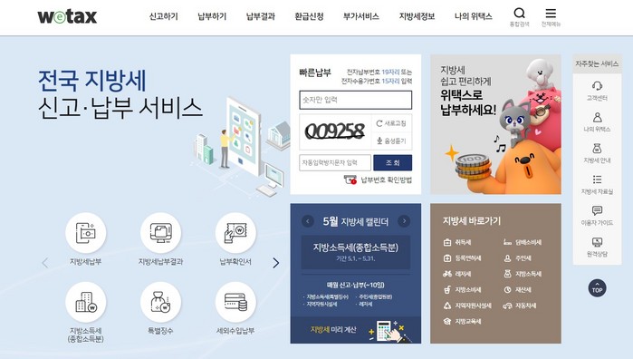 ▲위택스 홈페이지 화면. 용인시 제공 |