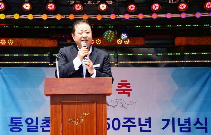 김경일 파주시장은 “통일을 염원하는 마음으로 주민들이 통일촌에 뿌리 내린지 어느덧 반세기가 지났다”며 “분단의 현장에 있지만 평화와 번영을 상징하는 통일촌이 앞으로도 희망찬 미래를 이어갈 수 있도록 파주시도 지원하겠다”고 말했다.