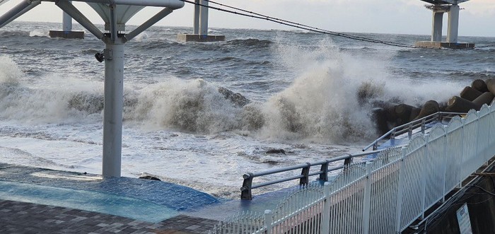 | ▲태풍 북상시 광안리 수변공원에 큰 파도가 밀여오고 있다. |