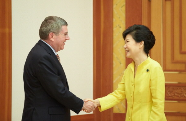 박 대통령은 이날 오후 방한 중인 바흐 위원장을 만나 오는 2018년 평창동계올림픽의 성공적인 개최를 위한 IOC차원의 지원 및 협력 방안 등을 논의할 예정이다.