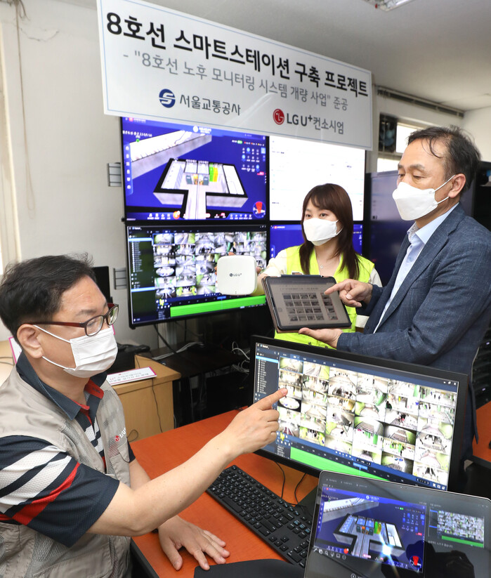 LG유플러스와 하이트론 컨소시엄은 ▲8호선 18개 역사를 가상공간에 재현하는 디지털트윈 ▲역사 내 사각지대를 해소한 지능형 CCTV ▲화장실 내에서 비정상적으로 장시간 머무르거나 쓰러지는 승객의 안전사고를 탐지할 수 있는 레이더를 구축해 긴급상황 발생시 신속하게 정보를 파악하고 대응할 수 있는 등의 이용객 편의를 확보한 스마트스테이션을 완성했다.