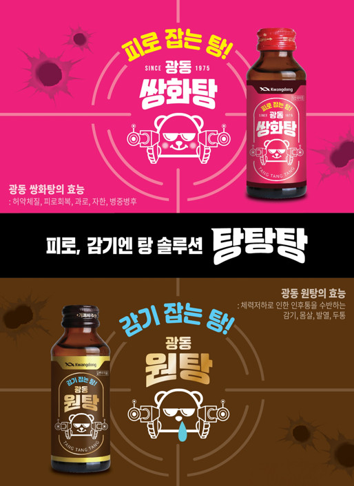 이 회사는 ‘광동 쌍화탕’과 ‘광동 원탕’을 찾는 기성세대는 물론 젊은 세대도 친숙하게 느낄 수 있는 디자인으로 패키지를 새롭게 꾸몄다. 일반의약품으로서의 효능·효과를 강조하는 문구와 함께 강추위에도 건강을 유지하는 북극곰 캐릭터를 활용해 관련 증상을 직관적으로 표현한 것. 또한 쌍화탕과 원탕의 각운(押韻, end rhyme)을 살린 ‘피로, 감기엔 탕 솔루션 탕탕탕’이라는 슬로건으로 MZ세대의 호응을 기대하고 있다.