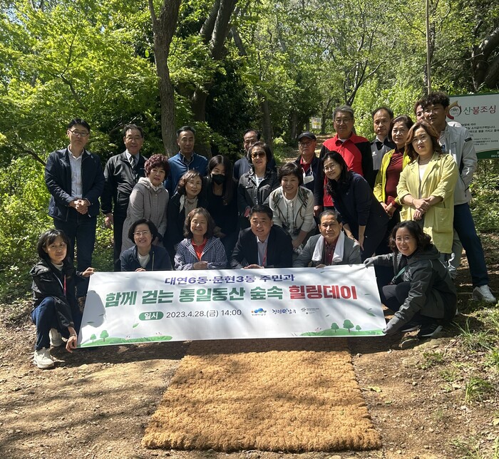 [로컬세계 부산=맹화찬 기자]부산 남구 대연6동·문현3동 행정복지센터는 지난 4월 28일에 관내 주민들과 함께 걷는 통일동산 숲속 힐링데이를 개최했다고 2일 밝혔다.