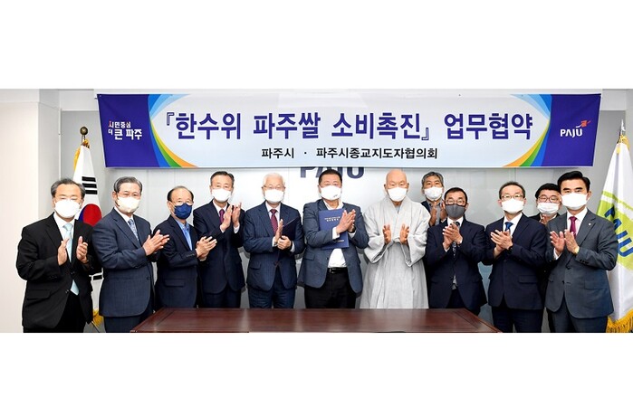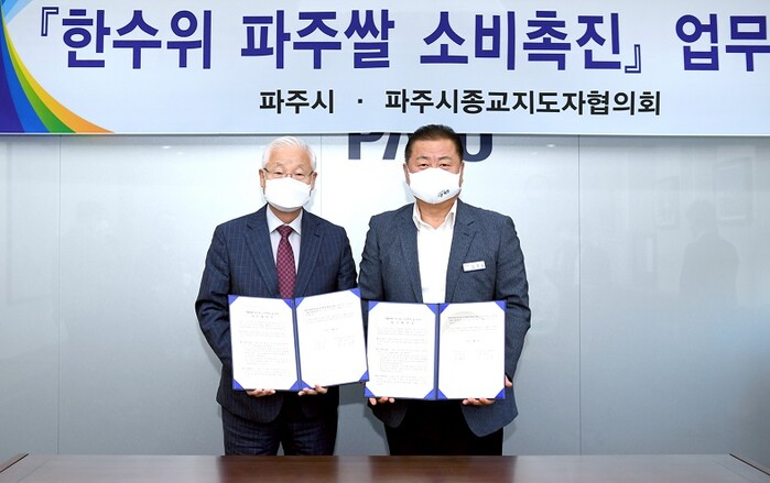 [로컬세계 = 이영원 기자]경기 파주시(시장 김경일)는 파주쌀 소비촉진을 통한 쌀 농가의 어려움 해결을 위해 지난 6일 파주시종교지도자협의회의와 업무협약을 체결했다.